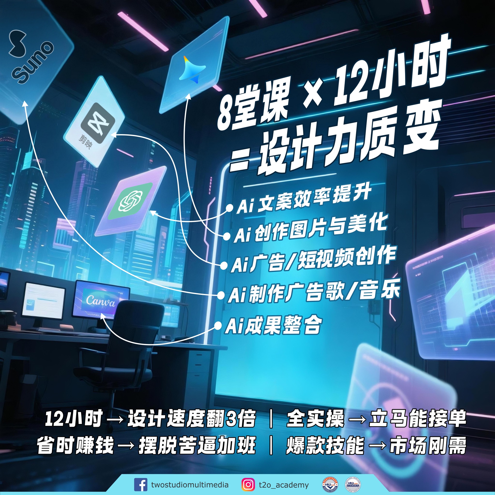 这8堂【AIGC职场实用设计技巧】课程,我们将教你如何用AI平台创造: